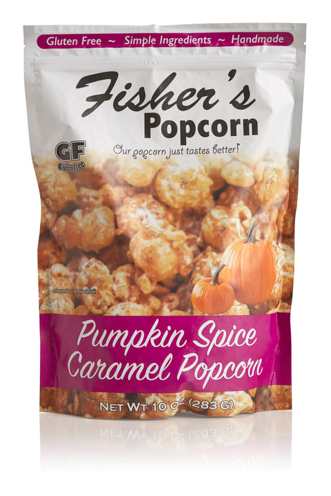 Fisher's Popcorn of Delaware Large Pouch Pumpkin Spice Caramel Popcorn - 10 OZ 12 Pack