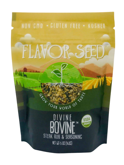 Divine Bovine is a delicious Organic spice blend that complements flame grilled beef, but also sizzles against the competition when used to sear steak in a cast iron skillet or broiled in the oven. While accentuating the delicious natural juices and smokey tones inherent to the grill this spice has the savory backbone to deliver restaurant quality flavor to your rib roast or homemade roast beef. Not to be limited to beef alone try this on pork, chicken, seafood, and vegetables like brussels sprouts, asparagus, or spinach. Mix with Organic Extra Virgin olive oil and serve with fresh bread for an amazing appetizer or snack.Ingredients