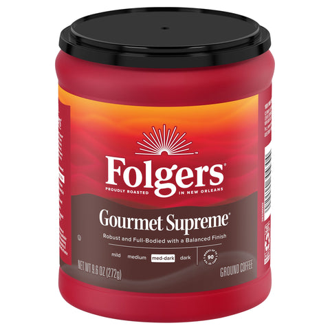 Robust and full-bodied with a balanced finish. 100% pure coffee. Every cup of Folgers Gourmet Supreme is proudly roasted in New Orleans with exceptional craft and passion. Notably full-bodied yet balanced, Folgers Gourmet Supreme empowers you to confidently take on the day.