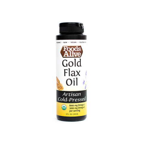 Our flax oil consistently beats the leading brands in blind taste tests! Foods Alive's Organic Gold Flax Oil is full of omega-3 fatty acids and nutrient-rich lignans. We believe that the freshest and best-tasting flaxseed grows in the most nutrient-dense and mineral-rich soil. Before we decide which seed to use, we artisan cold-press samples from several certified organic farmers. Then we taste each batch to find the one with the lightest and nuttiest taste, showing its full potential of essential minerals and nutrients. This is why our Organic Golden Flax Oil has an amazingly great taste that is oh so delicioso! Real health food! Full of heart-healthy omega-3 fatty acids and nutrient-rich lignans. Omega-3 fatty acids are essential and are associated with benefits like reduced inflammation, improved heart health and brain health. Our Artisan Cold-Pressed Oils consistently beat the leading brands in blind taste tests! We sample seeds from certified organic farmers and taste each batch to find the one with the lightest and nuttiest taste. This is why our Organic Golden Flax Oil has an amazingly great taste. Unrefined and free of preservatives. Our cold-pressed oils are crafted in small batches at a very low temperature on our own equipment to ensure quality and enjoyment. Organic, Non-GMO, Raw, Vegan, Gluten Free and Kosher. Flaxseed oil can be swapped for other types of oil in salad dressings, dips and sauces, or try it in a smoothie or on a baked potato! We use BPA-free bottles that are black to protect contents from light which can degrade the oil.Ingredients