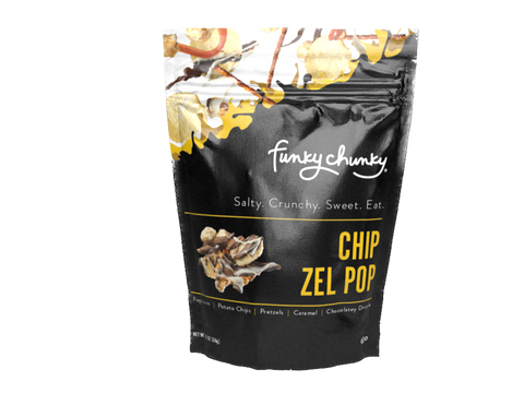 Orders ship in 1-2 weeks. We've created a safe word for your midnight cravings: Chip Zel Pop. The satisfying bite of salty chips and pretzels is the classic go-to snack. But combined with buttery caramel popcorn, thick swirls of caramel and three kinds of chocolatey drizzle? Stop. And by "Stop" we mean don't stop. Certified Kosher (certificate available upon request) Non-GMO Popcorn grown in the USA Handcrafted in small batches in the midwest