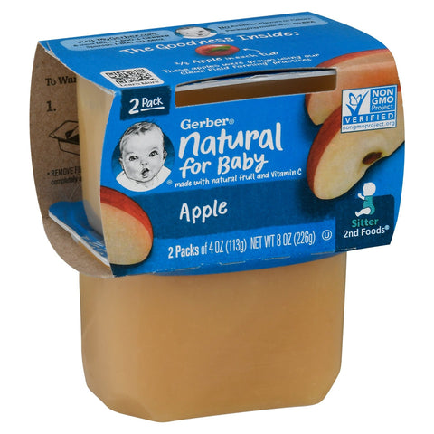 Sitter. No artificial flavors or colors. Non-GMO Project verified. nongmoproject.org. Inner units not labeled for retail sale. The Goodness Inside: 2/3 apple in each tub. These apples were grown using our clean field farming practices. MyGerber.com. Learn more. Visit MyGerber.com & meet Dotti, 1-800-4-GERBER. Spanish: 1-800-511-6862. Packaging made with no BPA.