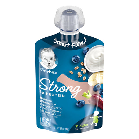 Gerber Strong Banana Blueberry Purple Carrot Greek Yogurt Mixed Grains - 3.5 OZ 12 Pack