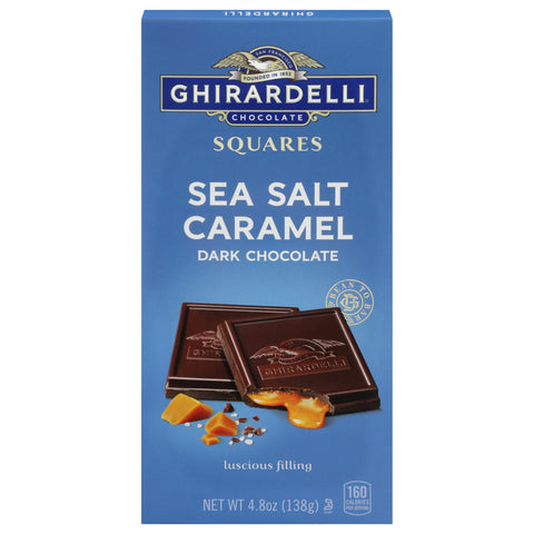 160 calories per serving. Founded in 1852. Bean to bar. Experience luscious, buttery caramel with a touch of sea salt in our slow-melting dark chocolate. Ghirardelli of San Francisco since 1852. The Ghirardelli difference from bean to bar. Select high quality beans. Roast nibs for intensity. Refine for smoothness. Conche for flavor. Our commitment to ultimate quality. ghirardelli.com/sustainability. Cocoa Farming Program: For more information about our ingredients and sustainable sourcing visit ghirardelli.com/sustainability. Please recycle.