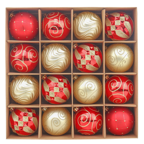 Glittery Red and Gold Christmas Ornament Bauble Set, Elegant 16 Piece Bundle