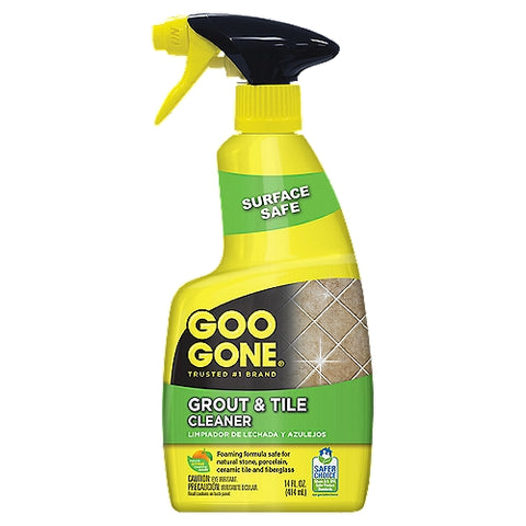Grout cleaning foam. Safe for natural stone, porcelain, ceramic tile & fiberglass. Defeat dirty grout! The power to easily deep clean dingy grout lines is yours with Goo Gone Whole Home Grout Cleaner. The foaming formula works fast to break down the toughest grout stains, leaving clean grout lines. Multi-surface safe (Do not use on multi surfaces), powerful cleaning for walls, countertops, floors, showers and tubs. Goo Gone Whole Home Grout Cleaner removes dirt build-up, set-in stains and soils faster and easier than all-purpose bathroom and tile cleaners. Great for porcelain and ceramic tiles, fiberglass, natural stone including granite and travertine. Removes mold stains, mildew stains, soap scum & hard water stains. No harsh chemicals or fumes. www.GooGone.com. No. 1 trusted brand. Removes dirt, mildew stains & grime build-up. No harsh chemicals or fumes. Whole home use. Floor- dirt & grime. Bathroom - mildew stains. Kitchen - food & grease. Made in USA.
