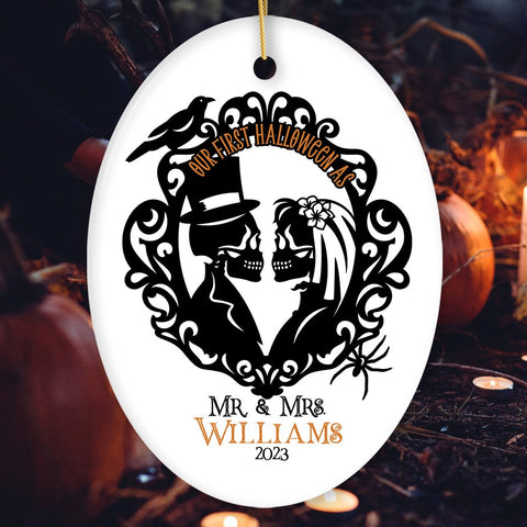 Gothic First Halloween Married Custom Ornament, Skeleton Couple Wedding Personalized Gift