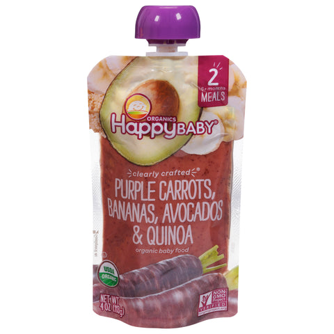Happy Baby Organics 2 (6+ Months) Organic Purple Carrots, Bananas, Avocados & Quinoa Baby Food 4 oz - 16 Pack