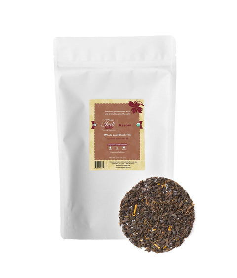 Awaken your senses with the brisk flavor of Assam. This bold black tea from Assam, India is the perfect companion for early mornings, giving you a healthy replacement for coffee. The tea is packed in a resealable foil-lined pouch, which keeps the tea fresh. Assam Black Tea 16 Oz. Bulk Tea Pouch contains approximately 200 servings of loose leaf black tea.Ingredients