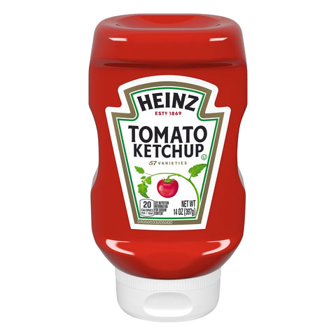 20 calories per 1 tbsp. See nutrition information for sodium content. Gluten-free. Estd. 1869. 57 varieties. For over 150 years, only Heinz has made the thick, rich ketchup America loves from only the best red-ripe tomatoes. Nothing else tastes like Heinz. heinz.com. Questions or comments? Call 1-800-255-5750.