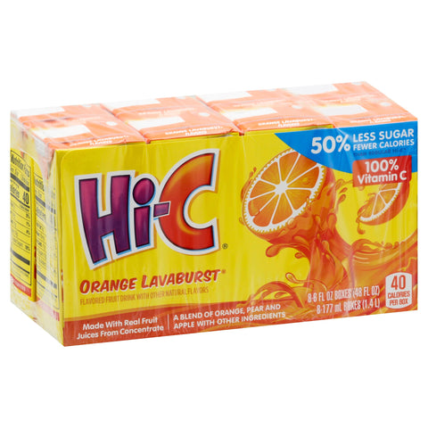 Flavored fruit drink blend with other natural flavors. 50% less sugar fewer calories than regular Hi-C (This Product: 40 calories and 10 g of sugar per box. Regular Hi-C: 80 calories and 22 g of sugar per box). 100% vitamin C. 40 calories per box. Made with real fruit juices from concentrate. A blend of orange, pear and apple with other ingredients. 10% juice blend. Pasteurized. Did you know - that each Hi-C drink box - contains a full day's supply of vitamin C and - is made with real fruit juice and - has the great taste your kids love. FSC: Mix - Board. Consumer Information call 1-800-888-6488. SmartLabel: Scan for more food information.