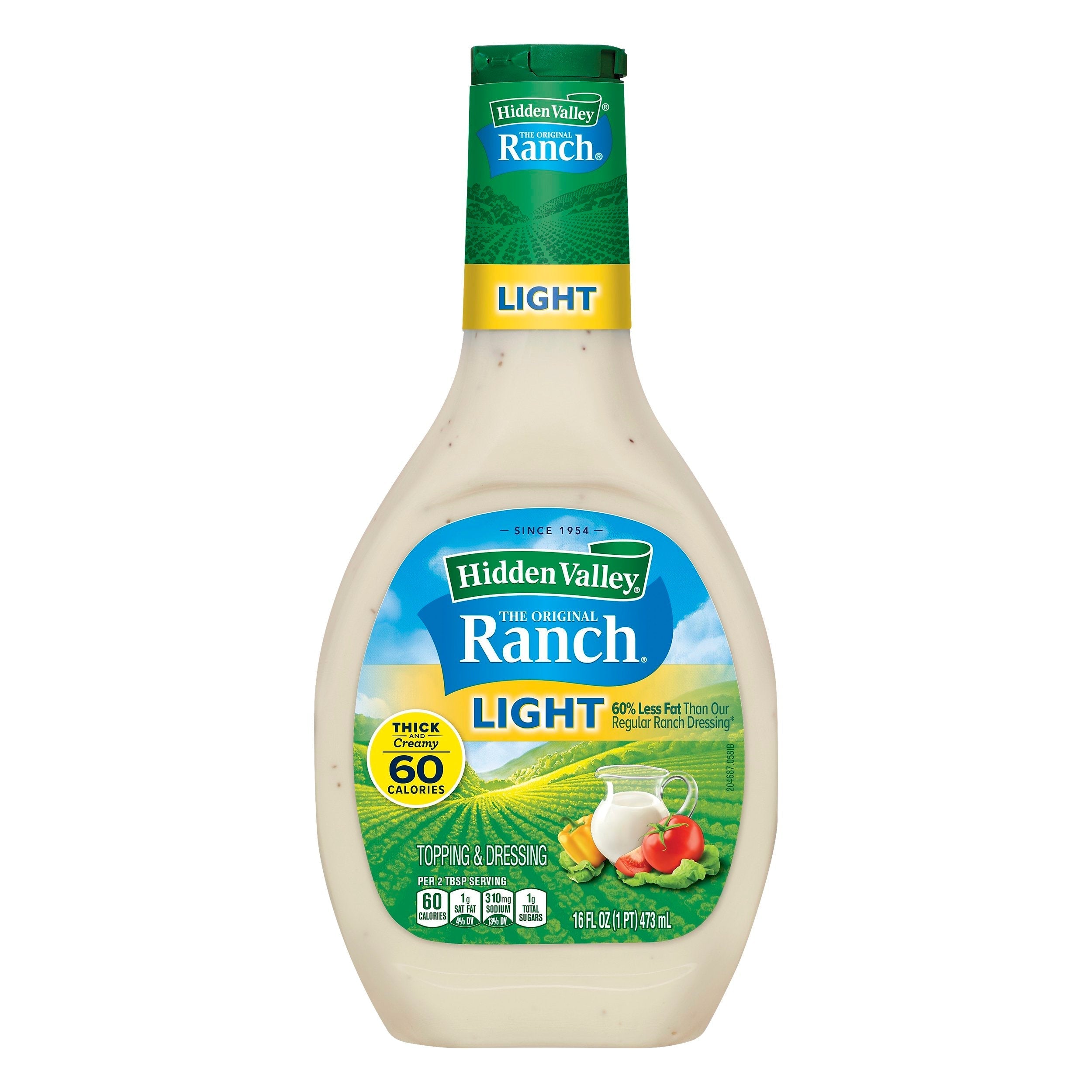 60 calories. Per 2 Tbsp Serving: 60 calories; 1 g sat fat (4% DV); 310 mg sodium (13% DV); 1 g total sugars. Gluten free. 60% less fat than our regular ranch dressing (HVR light has less than half the fat of HVR original ranch - 5 grams vs. 14 grams). Since 1954. Thick and creamy. how2recycle.info. hiddenvalley.com Questions or comments? Call (877) 853-7262. For recipes, go to: hiddenvalley.com. Shake up your weekday meals by cooking with HVR seasoning.