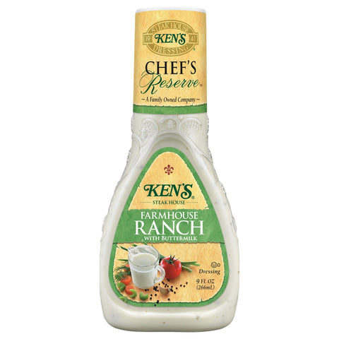 Farmhouse ranch with buttermilk. Gluten free. 1941. A family owned company. Satisfaction guaranteed or your money back from Ken. www.kensfoods.com. Questions/Comments? Call 1-800-645-5707 M-F 9AM - 5PM EST. www.kensfoods.com. Product of USA.