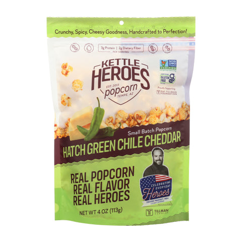 Kettle Heroes Popcorn Hatch Green Chile Cheddar Popcorn - 4 OZ 6 Pack