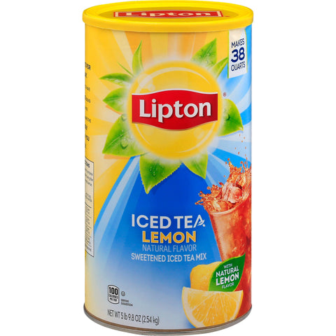 Sweetened ice tea mix. Natural flavor. With natural lemon flavor. 100 calories per 2 tbsp. Makes 38 quarts. A brilliant taste for a brighter day. Our expert mixologists have crafted a delicious blend of Lipton Iced Tea Mix with lemon flavor to make the most refreshingly delicious iced tea for you and your family. Package sold by weight, not volume. Settling of contents can occur. www.lipton.com. Questions or comments? Call 888-LiptonT (888-547-8668) or visit www.lipton.com. Product of Canada.