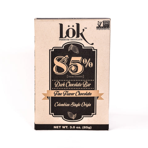 Lok Foods US Lok Dark Chocolate Bar 85% Cacao Colombian Origin - 3 oz 24 Pack