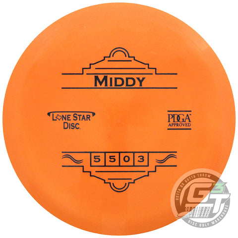 The MD-1 (Middy) was the first Lone Star Disc to receive PDGA approval. It is extremely dependable in all situations, and it's certainly NEVER afraid of a headwind! With its overstable nature, the Middy could possibly be the world's best disc for wind and for forehand throws! It can handle finesse and power throws.