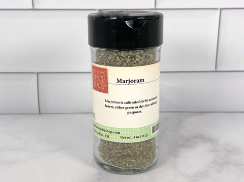Marjoram is the dried leaves and floral parts of the herb Origanium Hortensis. It has a sweeter and more delicate flavor than Oregano. Marjoram may be used in sausages, lamb, beef, pork, chicken, fish, tomato dishes, stuffing, breads, salad dressings and chowders. Marjoram is used in Italian, French, North African, Middle Eastern and American cuisines and spice blends such as Bouquet Garni, Fines Herbes and sausage and pickle blends.