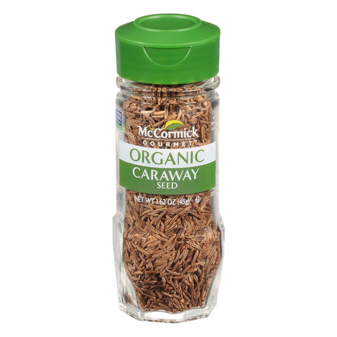 USDA Organic. Certified Organic by QAI. Non GMO Project verified. nongmoproject.org. Caraway adds a warm and slightly biting flavor to rye breads as well as hearty dishes such as goulash, sauerkraut and boiled potatoes. Filled by weight. Settling may occur. mccormickgourmet.com or call 1-800-632-5847. Packed in USA.