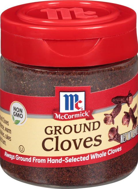 Non GMO. Always ground from hand-selected whole cloves. Our ground cloves bring an intense, warm flavor to cookies, cakes & glazed ham. mccormick.com. Flavor maker get app. Questions? Call 1-800-632-5847. For recipes, visit mccormick.com. Packed in USA.