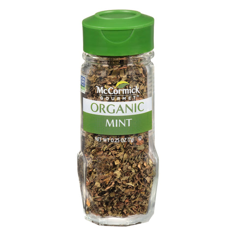 USDA Organic. Certified Organic by QAI. Non GMO Project verified. nongmoproject.org. Refreshing mint adds cool flavor to beverages, spring vegetables and fruit salads. A traditional seasoning for lamb, stews and marinades. Filled by weight settling may occur. mccormickgourmet.com or call 1-800-632-5847. Packed in USA.