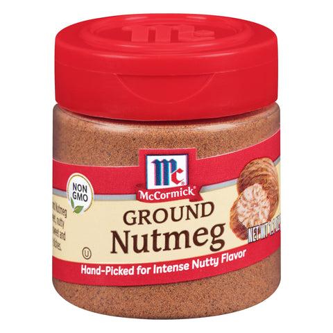 Non GMO. Hand-picked for intense nutty flavor. Our Ground Nutmeg adds sweet, nutty flavor to sweet and savory dishes. Flavor maker get app. mccormick.com. Questions? Call 1-800-632-5847. For recipes, visit mccormick.com. Packed in USA.