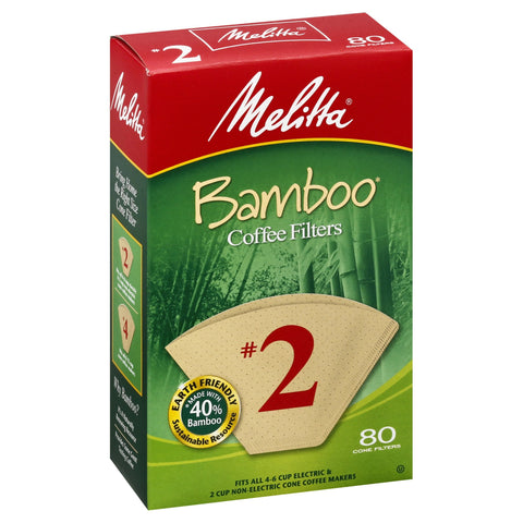 Bamboo (Made with 40% bamboo). Fits all 4-6 cup electric & 2 cup non-electric cone coffee maker. An earth friendly way to add more flavor to your life. Microline Flavor Enhancing perforations allow the full coffee flavor to filter through for a rich, flavorful cup of coffee. Compostable. Our double crimped filter design helps protect against bursting. The original pour-over Melitta Bentz - Founder and Inventor. It was 1908 when a German housewife, Melitta Bentz, made coffee history. Tired of the bitterness and troublesome grounds in her daily brew, Melitta poked holes in the bottom of a brass cup and lined it with a sheet of her son's blotting paper. Shen then filled the cup with ground coffee and poured in hot water, thereby creating the pour-over filtration system. The result - rich flavorful coffee without bitterness or mess. This innovation changed the way people worldwide make their coffee, becoming the precursor to modern day drip coffee brewing. Over 100 years later, Melitta remains dedicated to the pursuit of the perfect cup of coffee. Why Bamboo? It's a naturally renewing resource. Provides same great tasting coffee. melitta.com. Facebook.com/MelittaUSA. Global Releaf: americanforests.org. Melitta is proud to be part of the Global ReLeaf program by making an annual donation to support this national education and action campaign aimed at improving the earth's environment one tree at a time. Bring home the right size cone filter. No. 2 Fits all 4-6 cup electric & 2 cup non-electric cone coffee makers. No. 4 fits all 8-12 cup cone coffee makers. Earth Friendly: Sustainable Resource. Recycled paperboard. Recyclable. Made in the USA from foreign or domestic materials.