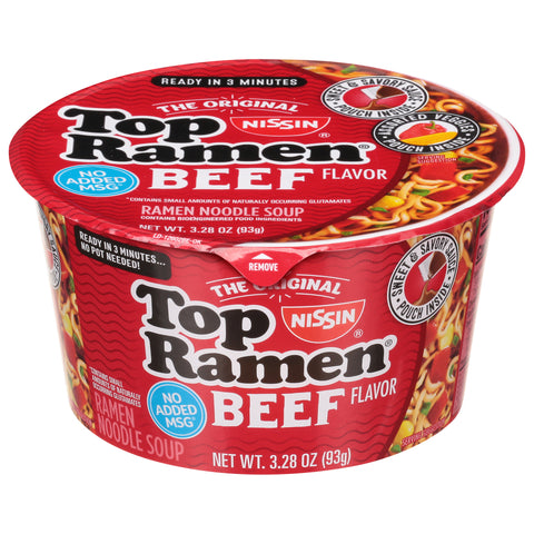 Nissin Top Ramen Beef Noodle Soup Bowl - 3.28 OZ 6 Pack