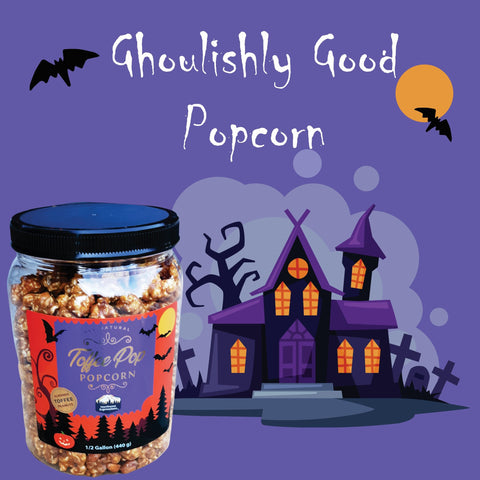 Trick or treat yourself (or your favorite ghost or goblin) to our ghoulishly delicious combination of Toffee, Almonds, Peanuts and Monstrous Mushroom Popcorn. TOFFEE COVERED POPCORN: Toffee Pop is not a caramel-flavored popcorn. Each batch is handcrafted by mixing our own signature Butter Crunch Almond Toffee and petite peanuts with fluffy mushroom popcorn and then it's heated in an old fashioned copper pot. Betcha can't eat just one handful!Ingredients