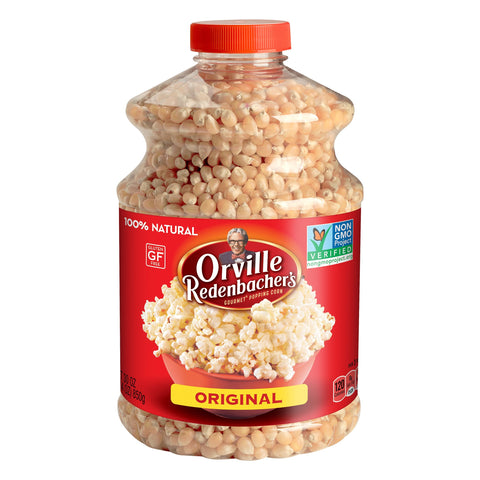 Per 3 tbsp Unpopped: 120 calories; 0 g sat fat (0% DV); 0 mg sodium (0% DV); 0 g sugars. Gluten free. Non-GMO Project verified. nongmoproject.org. 100% natural. www.orville.com. how2recycle.info. SmartLabel: Scan for more food information. Facebook. Instagram. Questions or comments, visit us at www.orville.com or call Mon-Fri, 1-800-243-0303 (except national holidays). Please have entire package available when you call so we may gather information off the label. We also recommend Orville Redenbacher's Popping & Topping Oil for a rich, buttery taste.