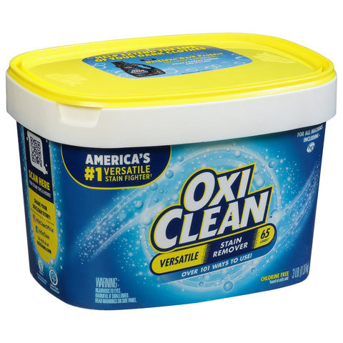 65 loads (Delivers 65 regular loads/uses when measured to line 1 on scoop). Over 101 ways to use! Chlorine free. For all machines including HE. America's No. 1 versatile stain fighter. Based on units sold. Save $1 US Dollar on any OxiClean laundry detergent. For more stain fighting ideas, visit www.OxiClean.com. Got a tough stain, need ingredient information, or have other questions? Visit OxiClean.com or call toll-free 1-800-781-7529 Monday through Friday 9am-5pm for stain tips.