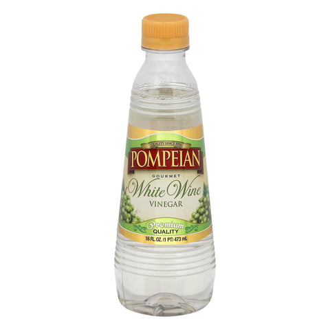 Naturally gluten free. Quality since 1906. Premium quality. As soon as you open the bottle and smell its fruity bouquet, you'll understand why Pompeian's white wine vinegar is considered as gourmet brand. It's crisp, clean taste works perfectly with herb dressings, shellfish, salads, and sauces. Non-allergenic. www.pompeian.com. For more information and recipes, visit www.pompeian.com. For questions or comments, call 1-800-Pompeian (1-800-766-7342).