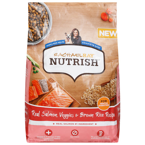 Natural food for adult dogs with added vitamins, minerals and nutrients. No artificial flavors or artificial preservatives. New. For gentle digestion. Real salmon no.1 ingredient. Omega-6 Omega-3 fatty acids helps support healthy skin and coat. No fillers. Rachael Ray Nutrish Real Salmon, Veggies and Brown Rice Recipe is a dog food made with simple, healthy ingredients, plus added vitamins, minerals and taurine, Real salmon is always the no.1 ingredient combined with veggies and wholesome grains to create an easily digestible and delicious meal, inspired by Rachael's kitchen.