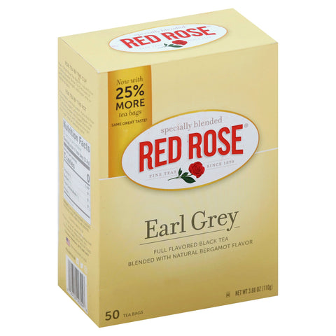 Fully flavored black tea blended with natural Bergamot flavor. Now with 25% more tea bags. Same great taste! Specially blended. Fine teas since 1890. A gluten-free food. Please visit us at: www.Redrosetea.com or write to: Redco Foods Inc. One Hansen Island, Little Falls, NY 13365. Consumer Relations: (877)248-2477. Follow us on Facebook; Twitter; Instagram. Taste the Love in Every Cup: Red Rose is blended with care to create a perfectly balanced, great-tasting tea. For more than 100 years we have been passionate about what we do, and from that passion we've blended a refreshing and aromatic Early Grey Tea. We have crafted this invigorating blend, using only the finest teas from premier mountain estates around the world, to capture the true essence of Early Grey Tea and its distinctive bergamot aroma. We are committed to sharing our love for tea with you. So when you sit down with a cup of Red Rose Tea, savor the aroma and taste the love in every cup. Manufactured in USA.