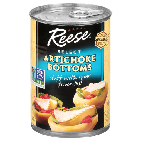 Dr wt 7.4 oz (210 g). Non GMO Project verified. nongmoproject.org. Reese quality since 1947. Stuff with your favorites! Reese Artichoke Bottoms are perfect for stuffing with your favorite foods. These meaty bottoms are a good source of fiber - healthy eating with a divine taste! www.ReeseSpecialtyFoods.com. Recipes & more www.ReeseSpecialtyFoods.com. Product of Spain.