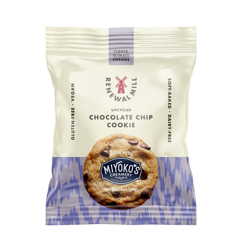 Orders ship in 1-2 weeks. Delicious, soft-baked chocolate chip cookie made with organic, upcycled okara flour and upcycled Miyoko's Creamery vegan butter. Plant-based, gluten-free, and climate-friendly, this do-gooder little cookie will renew your faith in the food system by empowering you to fight both food waste and climate change once sumptuous bite at a time.Ingredients