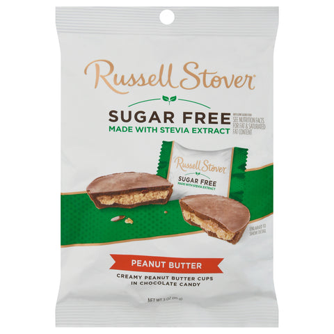 Creamy peanut butter cups in chocolate candy. Sugar free. Not a low calorie food. See nutrition facts for fat & saturated fat content. An American classic est. 1923. Our chocolate candies are handcrafted in small batches using copper kettles and kitchen mixers for superior taste & quality. Since its introduction in 1923, Russell Stover has been honoring the craft of fine chocolate making. With our sugar free chocolate candies, you can indulge in the delicious and delightful chocolate that you know and love, without the sugar. Guarantee of Quality and Freshness: We guarantee the quality and freshness of every Russel Stover product. If you are not fully satisfied for any reason, please save any unused portion with its packaging and contact us at www.russellstover.com/guarantee. www.russellstover.com/guarantee.