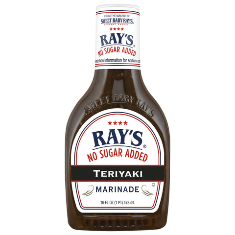 0 g added sugar per serving. No sugar added. See nutrition information for sodium content. Keto friendly. From the makers of sweet baby ray's gourmet sauces. The sauce is the boss! From the makers of Sweet Baby Ray's comes a no sugar added teriyaki that's actually worth eating! www.raysnosugaradded.com. www.sweetbabyrays.com.