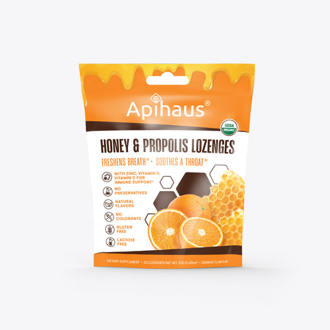 Vando Naturals Apihaus Honey and Propolis Organic Lozenges Orange Flavor 20 pcs - 2.45 OZ 12 Pack