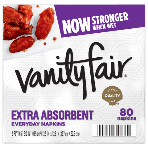 Now you can enhance even the messiest meal with the great look of Vanity Fair Everyday Extra Absorbent Napkins. Engineered with advanced technology for enhanced absorption, our 2-ply napkins are made to look stylish and classic taking on anything from syrupy pancake breakfasts to saucy spaghetti dinners.