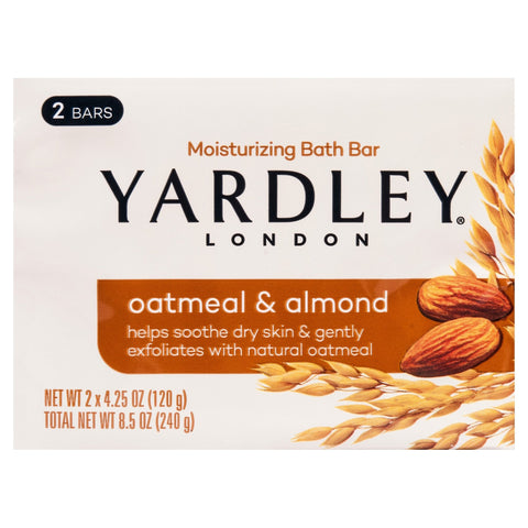 Helps soothe dry skin & gently exfoliates with natural oatmeal. All Yardley Moisturizing Bath Bars are paraben free & sodium lauryl sulfate free. You hold in your hands the result of generations of uncompromising quality, superior craftsmanship and time-tested ingredients. Since 1770, Yardley bath bars have stood as a symbol of English luxury, and today, that tradition continues with soaps crafted with essential oils and moisturizing ingredients to smooth your skin and soothe your mind - like this Oatmeal & Almond Moisturizing Bath Bar. Sweet overtones of almond mix with natural oatmeal to complete this extra gentle exfoliating bar. Soothe and protect against dry skin and irritation with tried and true ingredients that have made this our most popular soap. yardleylondon.com. Questions or comments, please call toll-free 1-877-995-5405. Not tested on animals. Recyclable packaging. Made in USA.