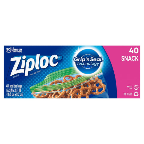 6-1/2 inches x 3-1/4 inches (16.5 cm x 8.2 cm). A family company. Grip'n Seal technology. Strong enough to use again. A family company since 1886. - Fisk Johnson. how2recycle.info. www.scjohnson.com. www.ziploc.com. Learn more at: www.scjohnson.com. For product information, storage tips and recipes visit us at www.ziploc.com. Questions? Comments? Call 800-558-5252 or write Helen Johnson. BPA free (BPA is not used to make polyethylene). Carton made with 100% recycled paperboard. Minimum 35% post-consumer content. Environmental Facts: Bags are recyclable when clean and dry at drop-off bins at participating retailers. Please recycle this paperboard carton. how2recycle.info. Bags made in Thailand.